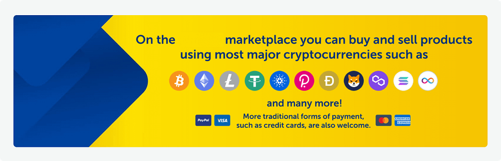 Уникальным предложением нашего маркетплейса является возможность оплачивать все продукты криптовалютой.