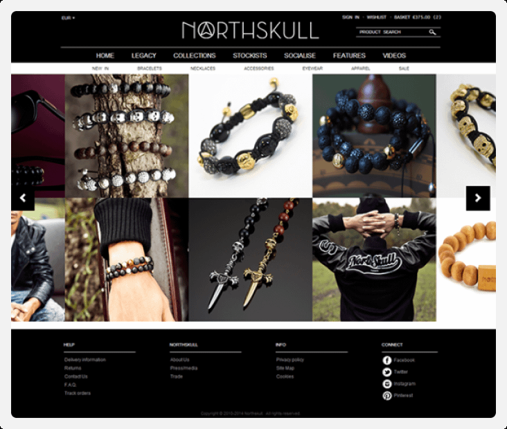 Northskull специализируется на выпуске уникальных аксессуаров и украшений из дорогих материалов: золота, серебра, кожи и ценных пород дерева. Компания лидирует в создании уникальных предметов, способных дополнить любой образ.