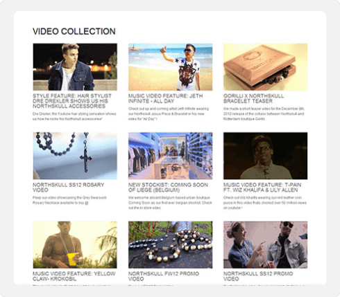 В разделе Видео происходит автоматическая загрузка видео с YouTube-канала Northskull. При воспроизведении видео загружается во всплывающем окне.