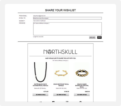 С помощью функционала Wishlist можно создать стильный список товаров и поделиться им с друзьями.