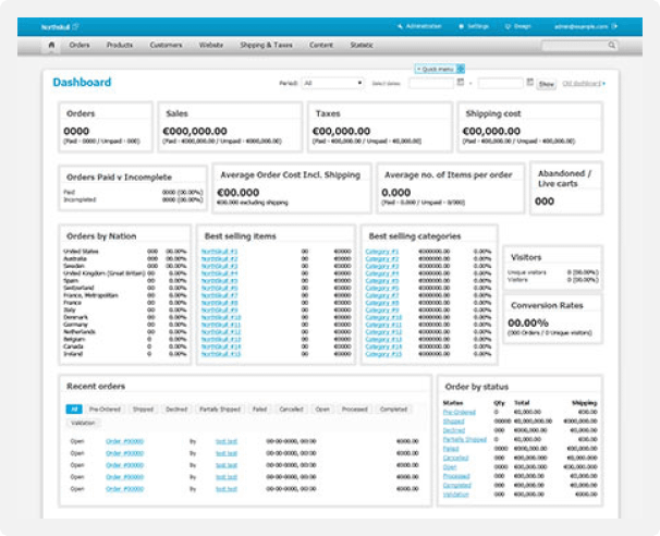 Мы разработали расширенную систему статистики продаж. У администратора Northskull есть настоящий пульт управления, как у пилота авиалайнера. Панель управления состоит из множества датчиков и счетчиков, которые измеряют работу магазина по десяткам параметров.