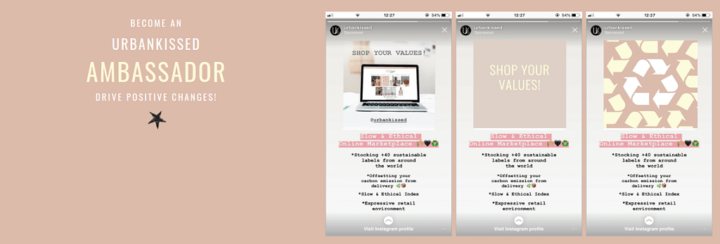 www.urbankissed.com - это маркетплейс модных товаров, объединяющий более 50 лейблов-адептов медленной и этической моды по всему миру. Маркетплейс был основан в 2017 году в Швейцарии как онлайн-площадка для тех, кто тщательно и осознанно подходит к покупке и продаже товаров на вдохновляющем и обучающем пространстве. Концепция площадки основана на принципах сторителлинга, эмоциональных стимулах и “взращивании” бренда, поэтому urbankissed.com довольно быстро стал эталоном в онлайн эко-сообществе и значимым шагом в направлении красивых, модных, уникальных, но при этом доступных лейблов.