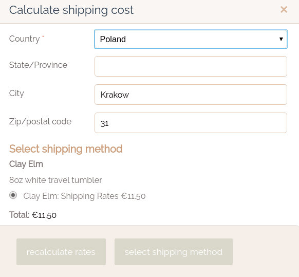 Simtech Development: Расчет стоимости доставки/Shipping Estimate показывает расчет времени и стоимости доставки разными транспортными компаниями.